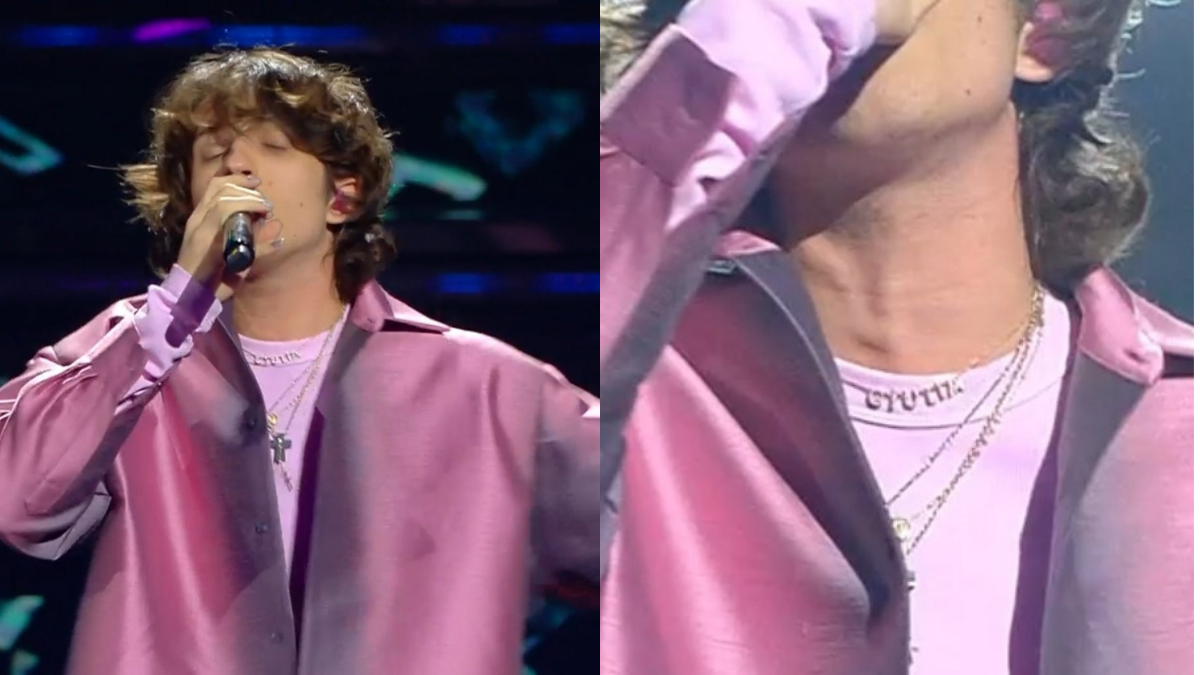 Ai telespettatori non è sfuggito il suo abbigliamento rosa e il dettaglio con cui ha omaggiato la sua lady, Giulia Stabile. Sangio indossava infatti la collana d’oro con su scritto Giulia. Sicuramente una bella dedica per Giugiulola, che pochi istanti dopo ha scritto sui social: “Chi dice che non è rimasto davvero a bocca aperta mente. Il mio bimbo ha spaccato”.
