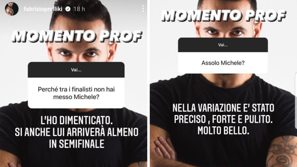 AMICI 21, PROLLI SU MICHELE– Terminata la Quinta puntata del Serale con l’eliminazione dei Carola, sono inevitabili i commenti e i giudizi sull’esibizione dei ragazzi. Sotto i riflettori il talentuoso Michele, ballerino fortemente voluto dalla professoressa Celentano che durante la puntata ha dato il meglio di sé. A notare il suo talento anche l’ex professore Fabrizio Prolli che non si tira mai indietro davanti alle domande dei fan che lo seguono anche se si tratta di dare giudizi.