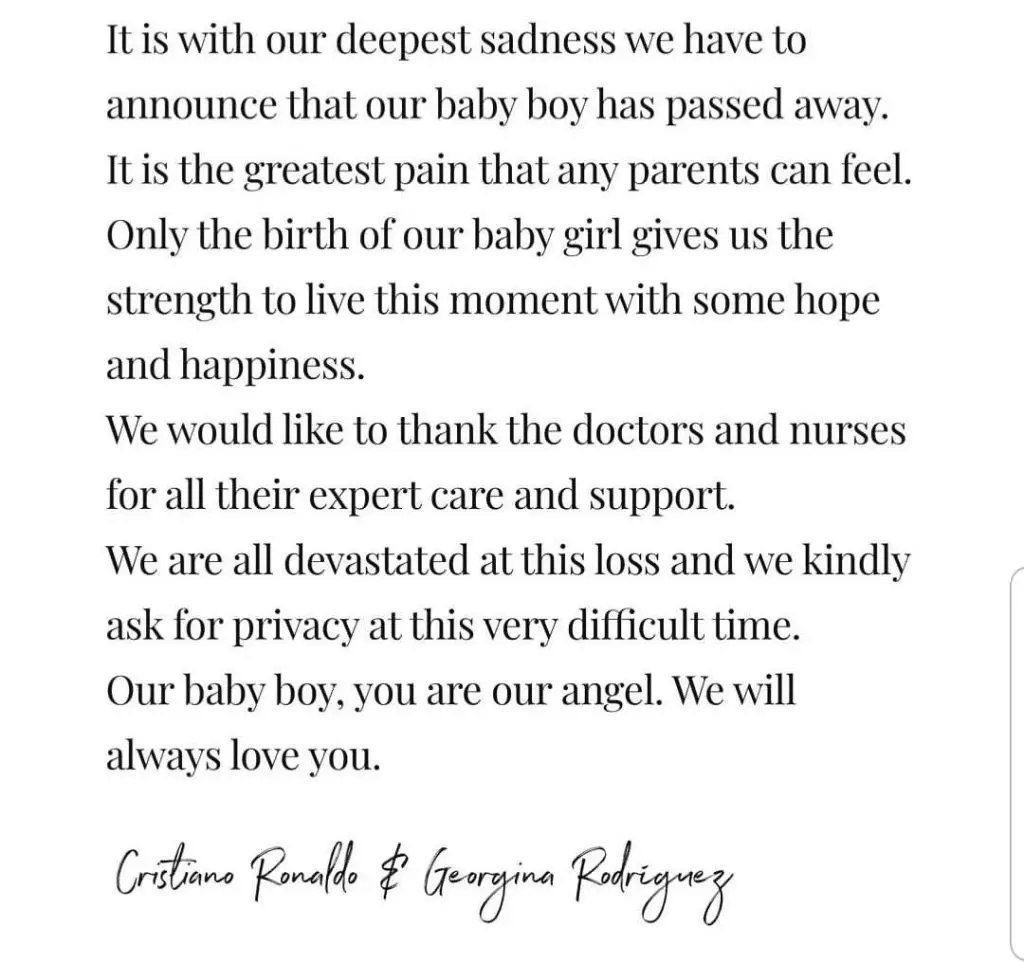 Georgina Rodriguez e Cristiano Ronaldo hanno perso durante il parto uno dei due gemelli che stavano aspettando