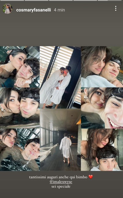 ALX WYSE, FESTEGGIA IL SUO COMPLEANNO SENZA COSMARY- Ieri il cantante Alex Wyse, ha festeggiato il suo compleanno e per l’occasione, ha voluto organizzare una grande festa a cui non sono mancati tutti gli allievi della scuola di Amici 21. Per l’evento sono state pubblicate foto che lo ritraevano felice e sorridente. Tra i post di auguri non poteva mancare quello di Cosmary, che per molti è ormai la sua fidanzata ufficiale. La bella ballerina ha fatto gli auguri al suo “bimbo“, in un modo molto tenero: pubblicando una storia, in cui la ritrae con lui durante una giornata alle terme, con tanto di dedica. Ecco il suo post: