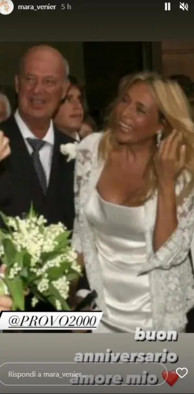 MARA VENIER E IL RAPPORTO CON IL MARITO – Un amore che dura da una vita e che il 28 giugno 2006 ha portato la conduttrice storica di “Domenica In” all’altare con il suo Nicola Carraro, il suo profilo recita: “Ex Editore , Ex Produttore Cinematografico , coautore del libro RIZZOLI , fan accanito di Mara Venier, autore e “attore” noto come Bibo’”. La conduttrice, in occasione dei loro 16 anni insieme aveva pubblicato un meraviglioso post per ricordare quella data. Eccolo: