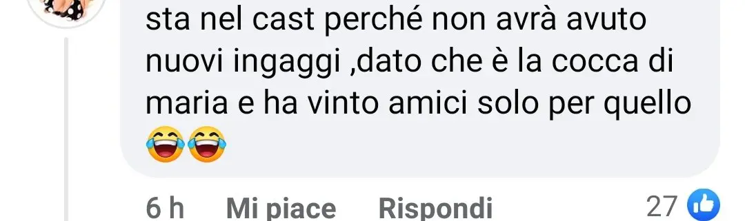 Ecco alcuni commenti degli utenti sui social: “sta nel cast perché non avrà avuto nuovi ingaggi ,dato che è la cocca di maria e ha vinto amici solo per quello 😂😂” e ancora: “Ma ancora Giulia?!? Quale sarebbe precisamente il suo ruolo oltre alla sua risata isterica che mi irrita i nervi e a tenere il tavolo xke nn cada, quale sarebbe il suo ruolo??“. Questi sono solo alcuni dei commenti che si leggono sul web.