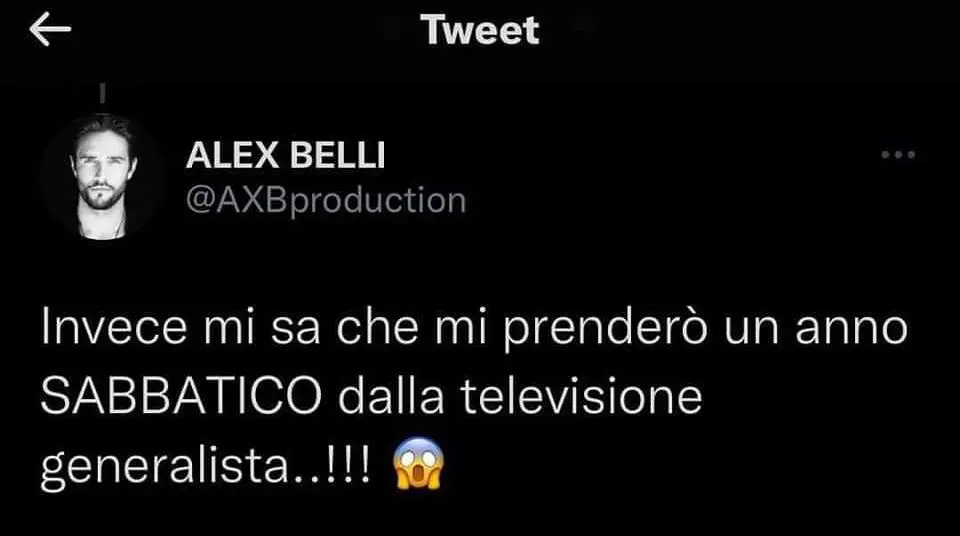 ALEX BELLI TORNA IN TV? ECCO LA RISPOSTA DELL’EX GIEFFINO (FOTO)- Alex Belli, protagonista assoluto della sesta edizione del GF VIP, ha rotto il silenzio sui social e ha svelato se ha intenzione di tornare in TV nel corso della prossima stagione. Volete sapere cos’ha dichiarato l’ex chiacchieratissimo gieffino? Ve lo sveliamo, come sempre, noi di Angolo delle Notizie! Ecco la foto del Tweet pubblicato dal profilo ufficiale di Alex Belli: