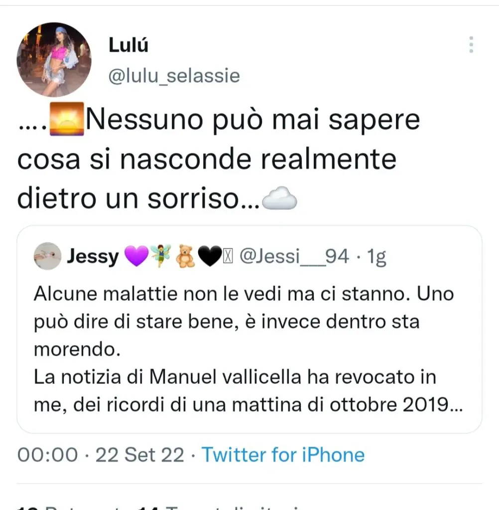LULU’ SELASSIE’ RISPONDE A UNA FAN ED EMOZIONA IL WEB (FOTO)- Lulù Selassiè, Finalista del Gf Vip 6, Reality Show condotto da Alfonso Signorini e super seguito in Italia, ha emozionato tutti rispondendo a una sua fan tramite il suo profilo ufficiale. In particolare, la principessina etiope si è soffermata sul sorriso e su ciò che si cela dietro di esso. Ecco la foto del Tweet pubblicato da Lulù sul suo profilo ufficiale: