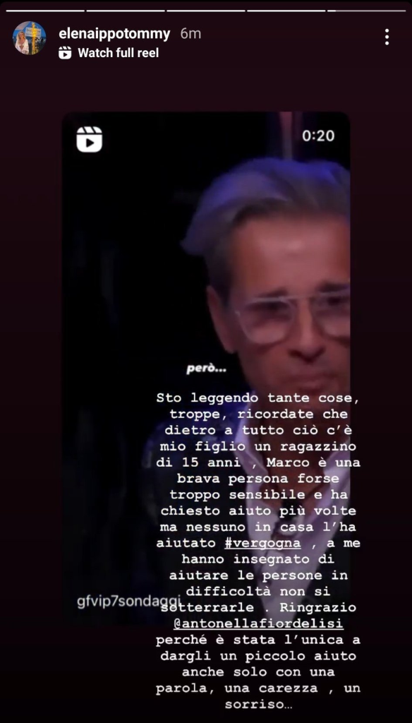 Vi alleghiamo, di seguito, anche le stories pubblicate su Instagram dall’ex compagna di Marco Bellavia: