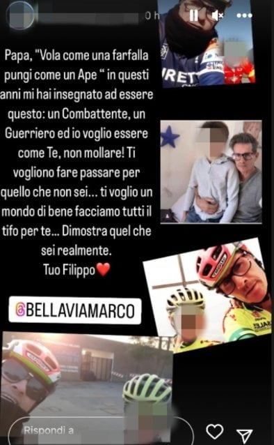 Ecco riportate, di seguito, le parole del figlio di Marco Bellavia, che nel corso delle ultime ore ha deciso di abbandonare definitivamente la casa più spiata d’Italia, seguendo il dictat della produzione: “Papà, ‘vola come una farfalla, pungi come un’ape’. In questi anni mi hai insegnato ad essere questo: un combattente, un guerriero. E io voglio essere come te, non mollare! Ti vogliono far passare per quello che non sei. Ti voglio un mondo di bene, facciamo tutti il tifo per te. Dimostra quello che sei realmente”. Ecco la Story pubblicata su Instagram da Filippo Bellavia: