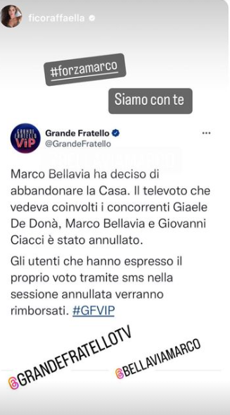 GF VIP 7, LE DICHIARAZIONI DI RAFFAELLA FICO PER MARCO BELLAVIA (FOTO)- Raffaella Fico, ex concorrente del Grande Fratello Vip 6, Reality Show condotto da Alfonso Signorini e seguito da milioni di telespettatori, ha pubblicato un breve messaggio dedicato a Marco Bellavia, che nel corso delle ultimissime ore ha deciso di abbandonare definitivamente la casa più spiata d’Italia. Preso di mira dal branco, isolato, insultato e deriso, Bellavia ha deciso di rientrare, come caldeggiato anche dalla produzione, a casa sua, per risolvere i suoi problemi. I vipponi nel loft di Cinecittà, eccezion fatta per Luca Salatino e Antonella Fiordelisi, non solo non sono stati in grado di aiutarlo, ma non ci hanno neanche provato.