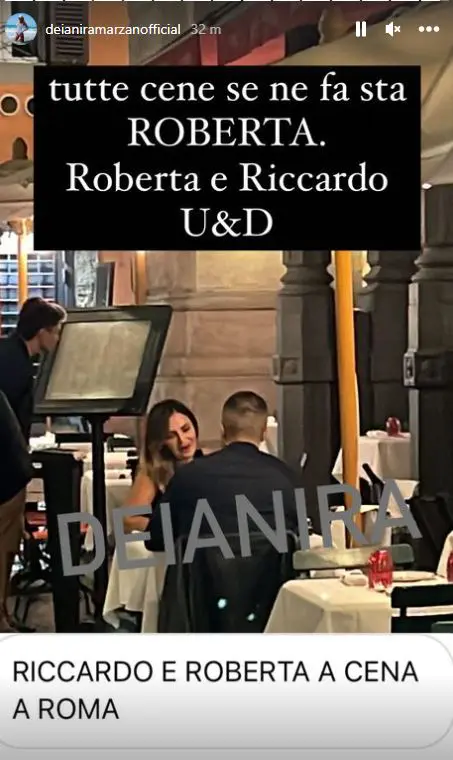 DEIANIRA MARZANO, IL SUO POST FA ESPLODERE I FAN DI UOMINI E DONNE- Non è la prima volta che l’esperta di gossip, Deianira Marzano, la più amata del web, lancia la bomba. E questa volta lo fa su un personaggio della trasmissione più seguita del primo pomeriggio su Canale 5, Uomini e Donne. Parliamo di Riccardo Maria Guarnieri, protagonista da anni all’interno del programma, che ha fatto sempre discutere per la sua storia tira e molla con Ida Platano. Dopo una lunga storia con lei, il cavaliere ha lasciato la trasmissione per poi ritornare più volte, in una di questa ha corteggiato Roberta Di Padua, con cui ha avuto una storia, poi finita male. In queste ore fa discutere il ritorno dei due al programma, ma il gossip si è focalizzato subito su una cena avvenuta ieri sera proprio tra riccardo e Roberta. ecco la storia postata da Deianira Marzano: