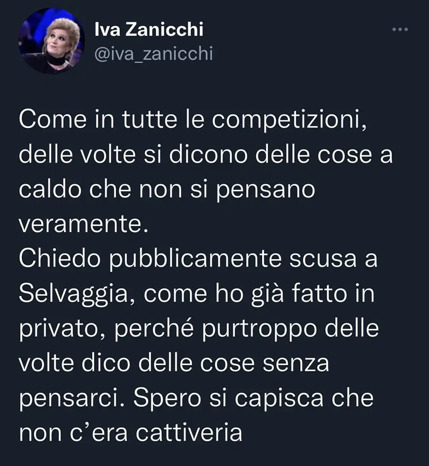 Ecco allegato, di seguito, anche il Tweet ufficiale pubblicato da Iva Zanicchi: