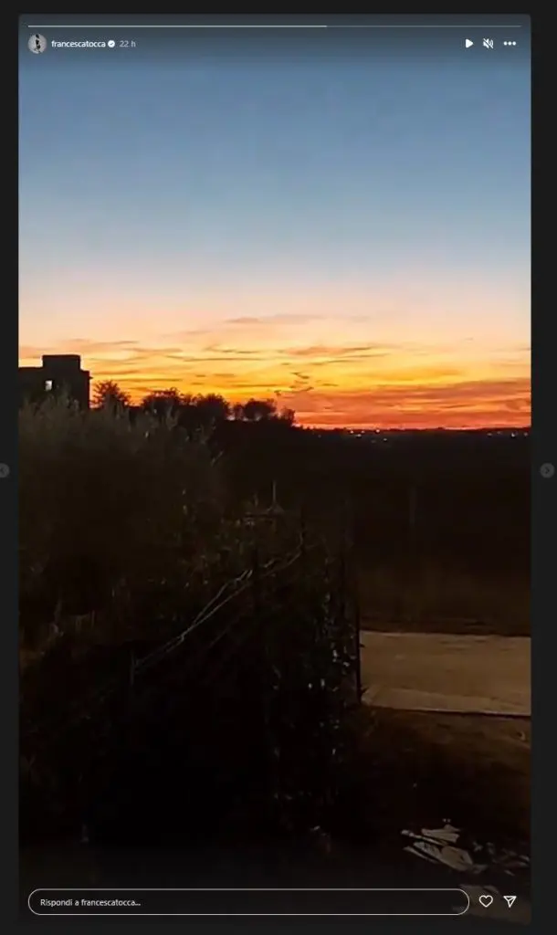 Un tramonto che simboleggia dunque la fine dell’amore con Todaro? Sembrerebbe proprio di sì, data anche la canzone in sottofondo scelta dalla professionista del Talent di Maria, che ha pubblicato la sua story sulle note di “Ti va di stare bene”, noto pezzo di Ultimo. Inoltre, nel corso degli ultimi giorni un altro post pubblicato da Francesca aveva fatto presagire una rottura fra i due. Eccolo, allegato, di seguito: