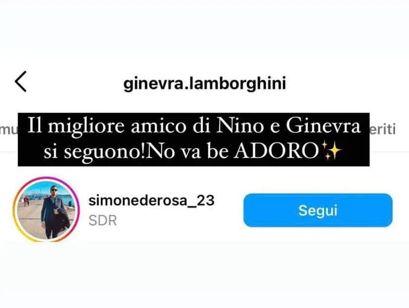 GF VIP 7: GINEVRA LAMBORGHINI E ANTONINO SPINALBESE, E’ AMORE VERO! LA PROVA CHE FA IMPAZZIRE I FOLLOWERS DEI GINTONIC (FOTO)- Quando manca meno di un’ora alla nuova puntata del GF VIP 7, Ginevra Lamborghini stupisce proprio tutti con una mossa che sa di conferma: la sorella di Elettra ha infatti seguito su Instagram il miglior amico di Antonino Spinalbese! Ecco la foto che lo prova, divenuta in breve tempo virale sui social: