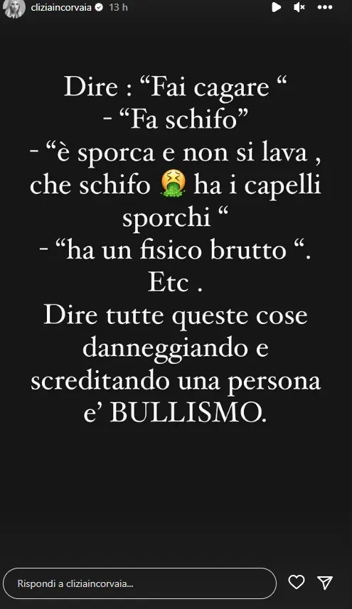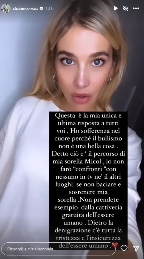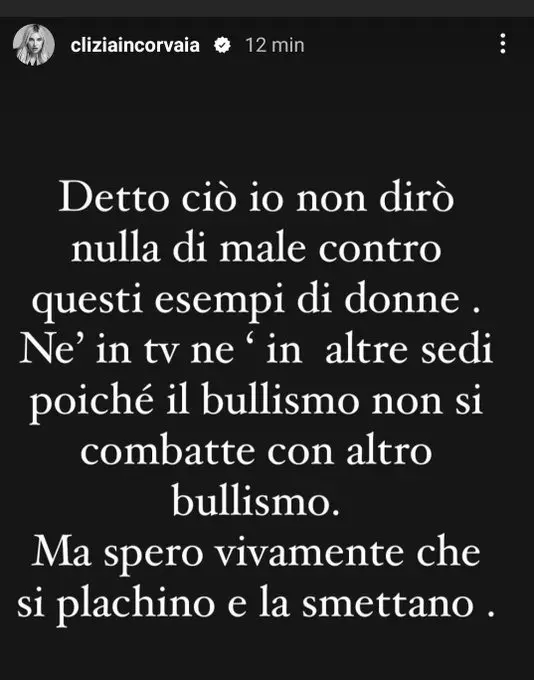 Clizia ha poi aggiunto un’altra Instagram Story che recita quanto segue: