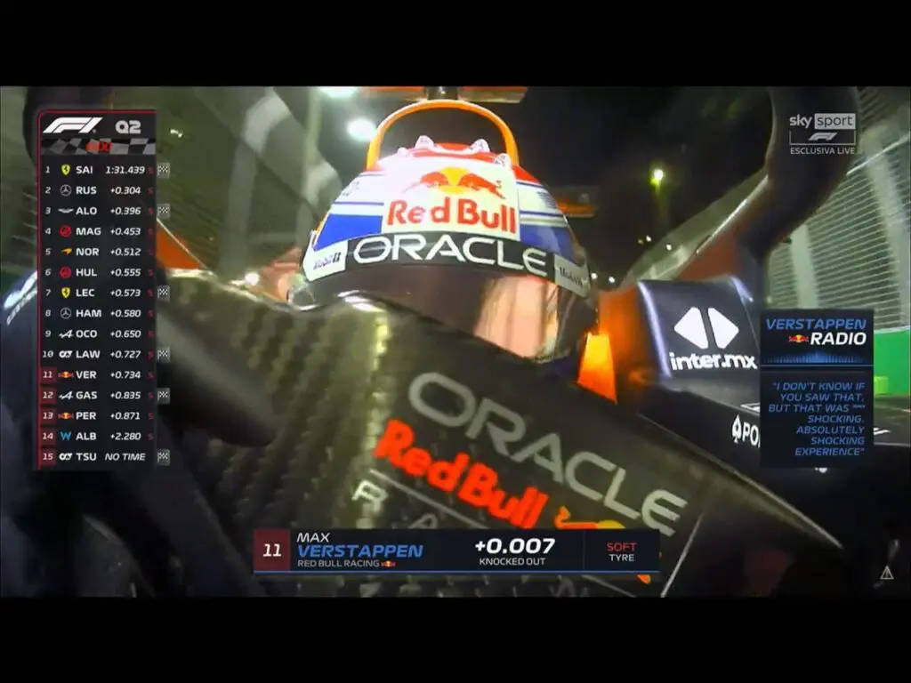 GRAN PREMIO DI SINGAPORE: LE QUALIFICHE NON SONO POSITIVE PER MAX VERSTAPPEN- Incredibile giornate per il campione del mondo, Max Verstappen, che in vista delle qualifiche di oggi pomeriggio, aveva già scontrato i primi problemi con l’ assetto della sua auto. Pur lamentandosi con il suo team, affermando che con quest’auto non si arrivasse molto in alto, avviene il vero colpo di scena.