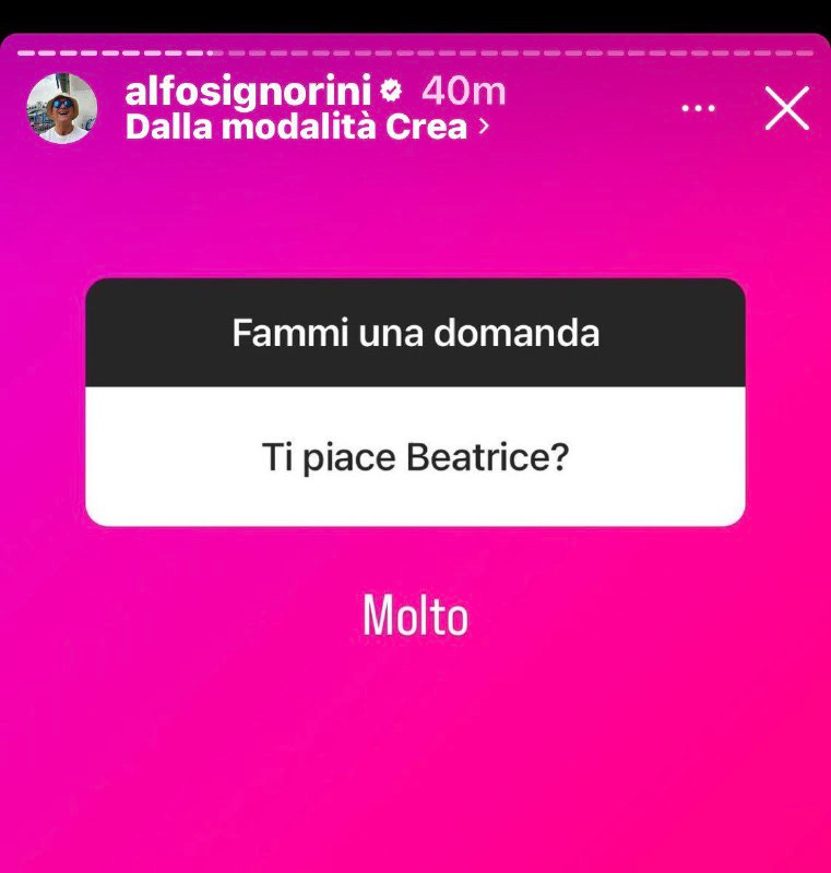 Ed ecco la story, divenuta virale su Instagram, in cui il conduttore ha risposto alle domande dei fan su Beatrice Luzzi: