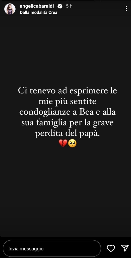Angelica Baraldi, il suo messaggio per Beatrice Luzzi