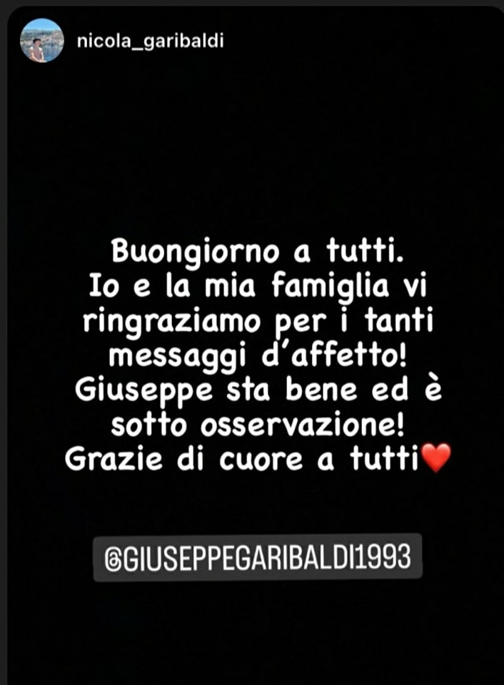 NICOLA GARIBALDI SVELA LE CONDIZIONI DI GIUSEPPE (FOTO)- Mancava soltanto l’aggiornamento ufficiale da parte del fratello, ma anche Nicola Garibaldi, adesso, ha rotto il silenzio, annunciando come sta il concorrente del reality show di Canale 5 condotto da Signorini.