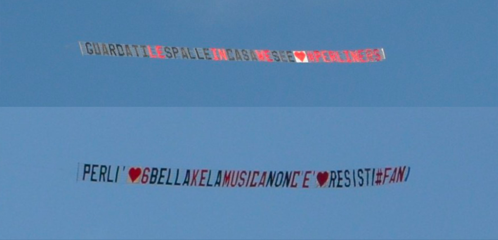 Il contenuto dello striscione era il seguente: “Guardati le spalle in CASA, We see #perliners”- hanno scritto i follower della Vatiero.