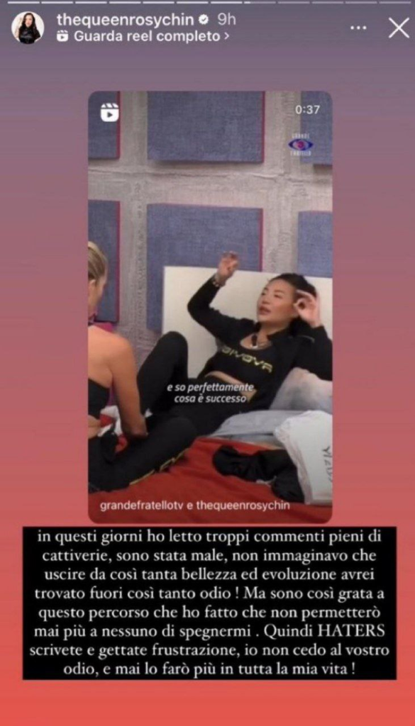 Ecco la story caricata su Instagram da Rosy: