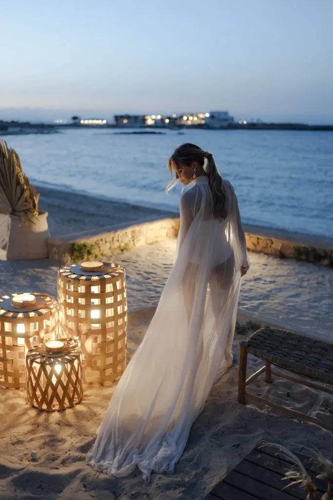 I due si sono sposati a Formentera. Angela Robusti ha fatto tre magnifici cambi di abito durante la festa, tutti firmati dal prestigioso Atelier Pronovias.