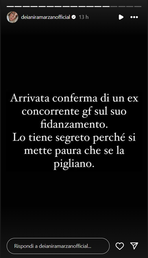 Tuttavia in molti pensano che le parole di Deianira si riferiscano all’ex gieffino Alessio Falsone, che in tempi non sospetti ha chiuso definitivamente con Anita Olivieri. Difficile pensare che Sergio D’Ottavi, deluso e amareggiato per la rottura con Greta, abbia già una nuova fidanzata. Che cosa ne pensate? Continuate a commentare numerosi e rimanete sintonizzati per tutte le news in tempo reale sul Grande Fratello.