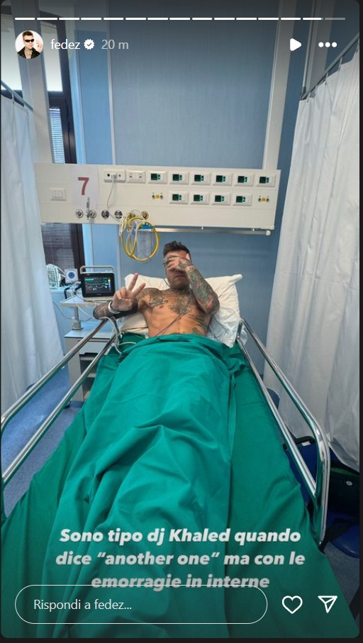 Ecco le parole di Fedez: “Sono tipo Dj Khaled quando dice ‘another one’ ma con le emorragie interne”.