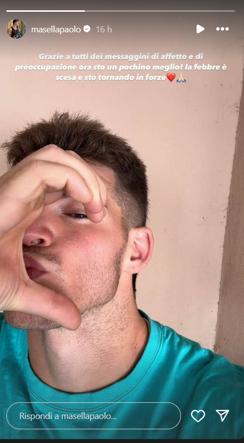 Ecco le dichiarazioni di Masella: “Grazie a tutti dei messaggini di affetto e di preoccupazione, ora sto un pochino meglio! La febbre è scesa e sto tornando in forze”.