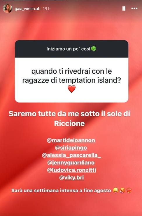 Ecco le parole di Gaia: “Saremo tutte da me sotto il sole di Riccione. Sarà una settimana intensa a fine agosto”.