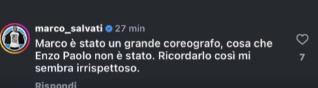 Ecco le parole di Salvati: “Marco è stato un grande coreografo, cosa che Enzo Paolo non è stato. Ricordarlo così mi sembra irrispettoso“. Questo episodio ha acceso un dibattito sul rispetto da riservare ai professionisti scomparsi e sull’importanza di riconoscere il loro contributo al mondo della danza e dello spettacolo. Garofalo, che si era avvicinato alla danza a 21 anni dopo un infortunio calcistico, era riuscito a costruire una carriera di successo e a farsi apprezzare da molti nel settore.