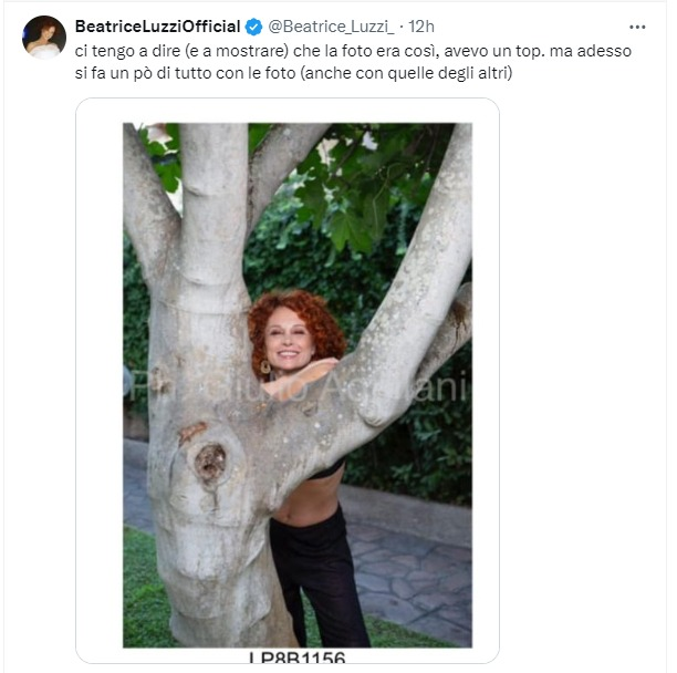 Ecco il tweet di Beatrice Luzzi, che ha fatto in breve tempo il giro del web ed è stato poi cancellato, in seguito alla rimozione della foto: