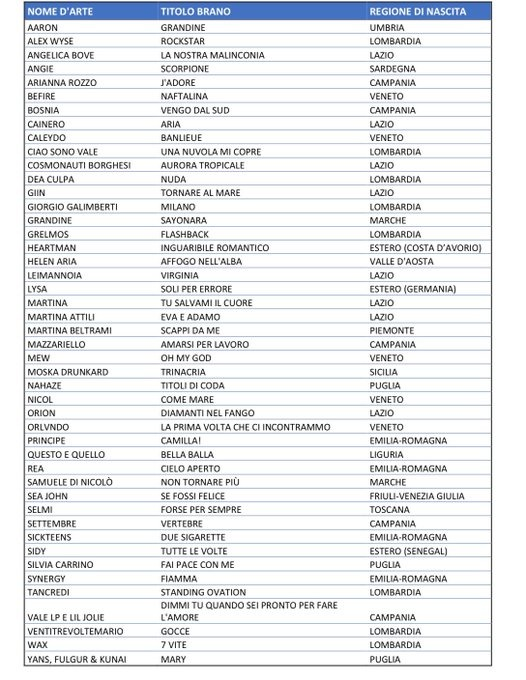 Folta, dunque, la presenza di ex allievi di Amici. Seguirete le selezioni di Sanremo Giovani? Ditecelo nei commenti e restate sintonizzati per tutte le news in tempo reale su musica, gossip e palinsesti televisivi Mediaset.