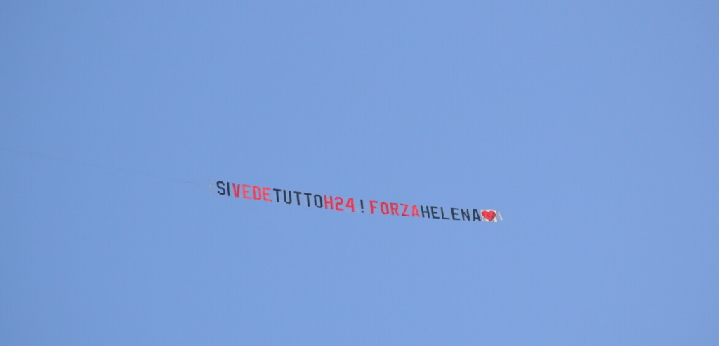 Ecco lo striscione dei fan per Helena: “Si vede tutto h24! Forza Helena”.