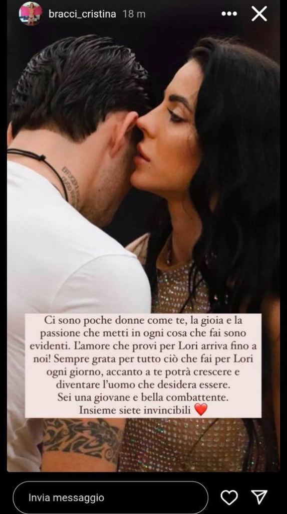 Ecco riportate, di seguito, le considerazioni di Cristina Bracci su Shaila Gatta, ex fidanzata di suo figlio, Lorenzo Spolverato: “Ci sono poche donne come te, la gioia e la passione che metti in ogni cosa che fai sono evidenti. L’amore che provi per Lori arriva fino a noi! Sempre grata per tutto ciò che fai per Lori ogni giorno, accanto a te potrà crescere e diventare l’uomo che desidera essere. Sei una giovane e bella combattente. Insieme siete invincibili“.