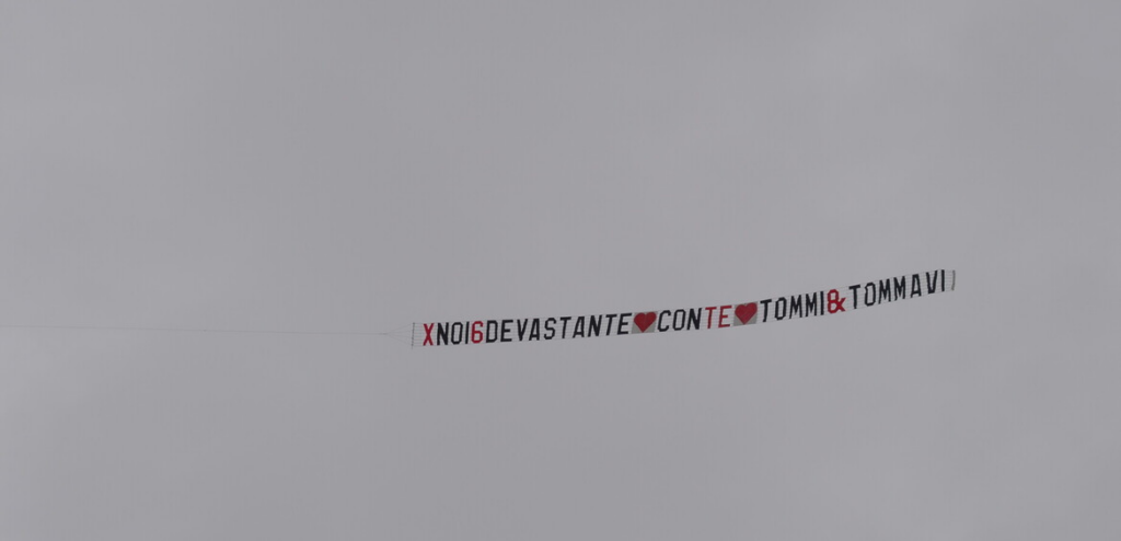 Lo striscione con aereo annesso da parte di Tommaso Franchi