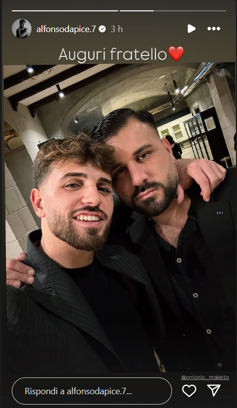 Ecco la dedica di Alfonso D’Apice per Maietta Antonio, ex di Titti Scialò: “Auguri fratello”.