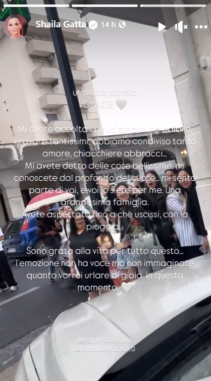 Ecco riportate, di seguito, le dichiarazioni di Shaila: “Una sola parola, grazie. Mi avete accolta con un amore incredibile, eravate tantissimi, abbiamo condiviso tanto amore, chiacchiere, abbracci.. Mi avete detto delle cose bellissime, mi conoscete dal profondo del cuore.. mi sento parte di voi, e voi lo siete per me. Una grandissima famiglia. Avete aspettato fino a che uscissi, con la pioggia. Sono grata alla vita per tutto questo. L’emozione non ha voce ma non immaginate quanto vorrei trovare le parole giuste e urlare di gioia in questo momento”.