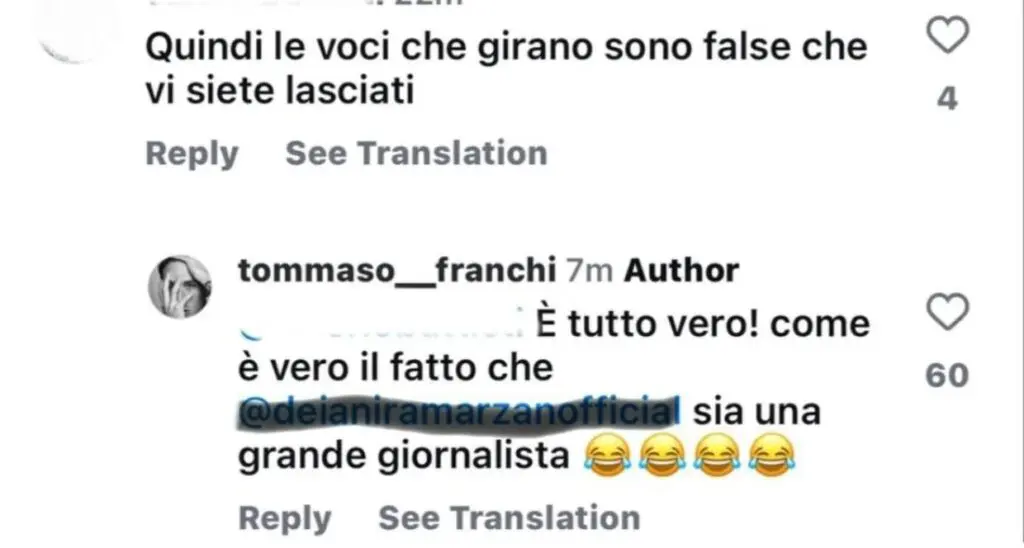 La news è stata smentita dall’ex amato concorrente del reality show di Canale 5: sentite cos’ha dichiarato circa 14 ore fa sul suo profilo Instagram ufficiale l’idraulico e compagno di Maria Vittoria Minghetti, originario di Siena, mettendo a tacere qualsivoglia rumors. “Tutto vero.. come è vero il fatto che Deianira Marzano sia una grande giornalista!”– ha replicato ironicamente Franchi sui social, mostrandosi felice con l’ex gieffina, Maria Vittoria Minghetti, con cui il rapporto è sempre più solido, anche fuori dalla Casa del GF.