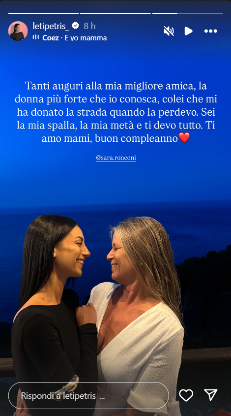 LETIZIA PETRIS: LA DOLCE DEDICA PER SUA MAMMA (FOTO)- Nel corso delle ultimissime ore, la Petris, ex amatissima concorrente del GF 17, Reality Show di Canale 5 condotto da Alfonso Signorini, ha speso delle bellissime parole per sua madre, la quale oggi, 20 giugno 2025, spegne le candeline. Scopriamo insieme che cos’ha dichiarato nel dettaglio Letizia, giovane fotografa e fidanzata di Paolo Masella, ex gieffino e macellaio romano.