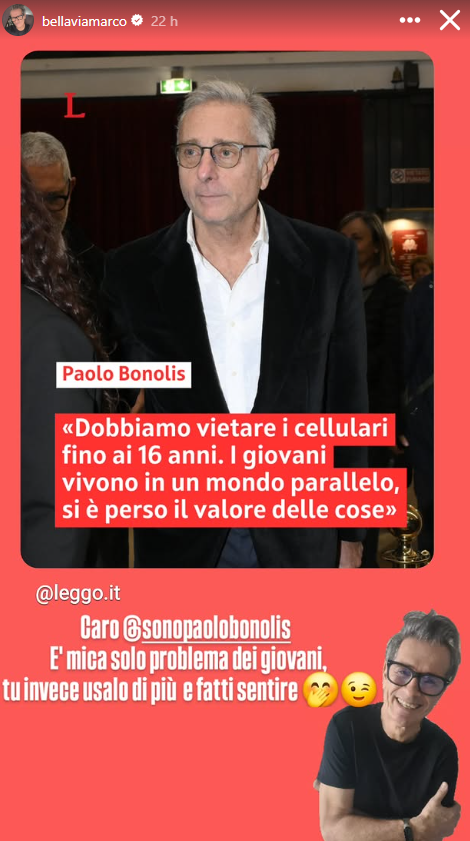 Ma non finisce qui. L’ex conduttore di Bim Bum Bam, da sempre molto sensibile ai temi della salute mentale, che aveva anche cercato di portare alla ribalta durante la sua breve esperienza nel reality, ha deciso di rispondere pubblicamente anche a Paolo Bonolis. Commentando un’intervista in cui il conduttore parlava della necessità di vietare i cellulari ai ragazzi sotto i 16 anni, Bellavia ha scritto: “Caro Paolo Bonolis, è mica solo problema dei giovani. Tu invece usalo di più e fatti sentire”. Una stoccata diretta, che sottolinea ancora una volta la delusione per il mancato contatto umano.