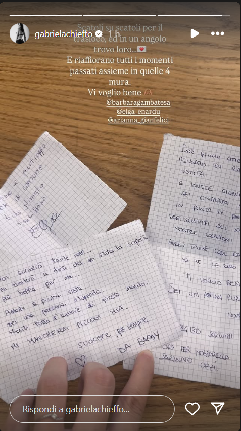 GABRIELA CHIEFFO: I BIGLIETTI DELLE SUE AMICHE DI THE SOCIAL HOME E LA SUA REAZIONE (FOTO)- In queste ore, l’ex amata concorrente del reality show di Canale 5 condotto da Filippo Bisciglia, protagonista anche a The Social Home, ha ritrovato dei dolci pensieri che le avevano scritto le sue compagne di viaggio. Scopriamo insieme come ha reagito, pubblicando una story sul suo profilo Instagram ufficiale, che è divenuta in breve tempo virale.
