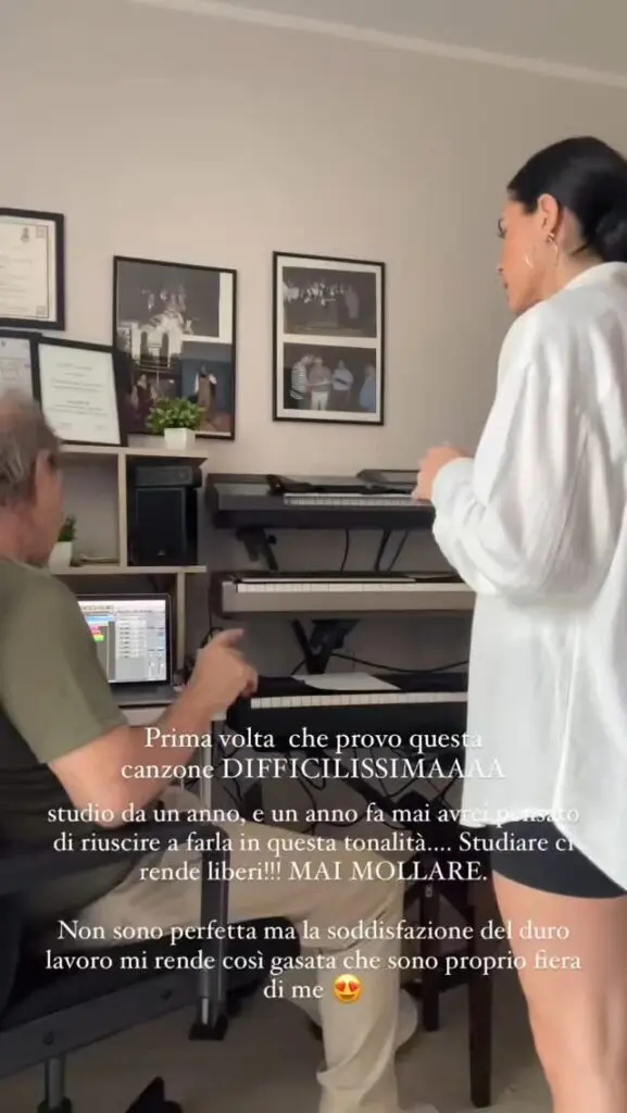 Ecco riportate, di seguito, le parole di Shaila: “Prima volta che provo questa canzone difficilissima, studio da un anno, e un anno fa mai avrei pensato di riuscire a farla in questa tonalità… Studiare ci rende liberi! Mai mollare.. Non sono perfetta, ma la soddisfazione del duro lavoro mi rende così gasata che sono proprio fiera di me”.