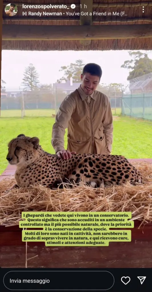 GRANDE FRATELLO: LORENZO SPOLVERATO SVELA UN INCREDIBILE DETTAGLIO SUI LEONI IN AFRICA. LE PAROLE DELL’EX VOLTO DEL REALITY SHOW DI CANALE CINQUE AL CUI TIMONE ABBIAMO AVUTO ALFONSO SIGNORINI- Giunto in Africa con il suo inseparabile amico, Michael Castorino, il finalista del reality show di Canale 5 presentato da Alfonso Signorini sta condividendo ogni dettaglio dal suo viaggio sui social con i suoi numerosissimi follower. Sentite cos’ha dichiarato il modello comasco d’origine sul suo profilo Instagram ufficiale, a proposito dei ghepardi.