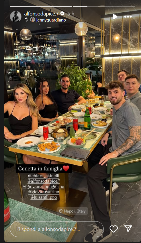 I Chiaronso, nella notte, hanno incontrato, a Napoli, Giovanni Bongiorno, Giovanni Tarantino, Filippo e l’immancabile Jenny Guardiano, ex di Tony Renda, in quella che è stata descritta come una cenetta in famiglia. Che cosa ne pensate di questa sorprendente reunion?