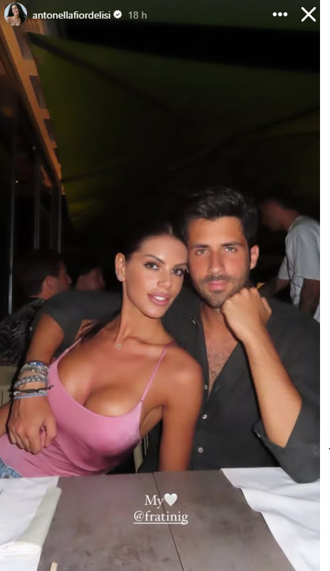 La cornice è quella di una serata estiva, probabilmente in un locale esclusivo, con luci calde e atmosfera rilassata. Antonella e Giulio sono seduti fianco a fianco: lei, con un top rosa scollato che esalta la sua bellezza mediterranea e il sorriso luminoso, lui con una camicia scura sbottonata e lo sguardo complice rivolto all’obiettivo. A catturare l’attenzione dei fan è stata la breve ma intensa dedica che accompagna lo scatto: “My ❤️”. Poche parole che, tuttavia, raccontano molto della loro intesa.