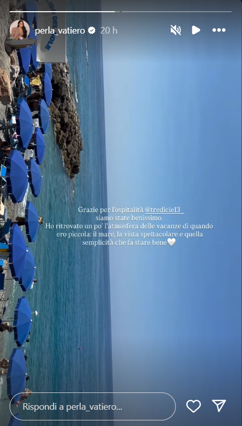 Di seguito le dichiarazioni di Perla: “Grazie per l’ospitalità. Siamo state benissimo. Ho ritrovato un po’ l’atmosfera delle vacanze di quando era piccola: il mare, la vista spettacolare e quella semplicità che fa stare bene”- ha scritto la vincitrice del GF 17.