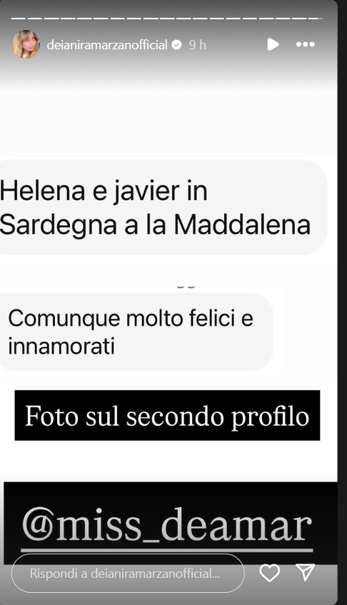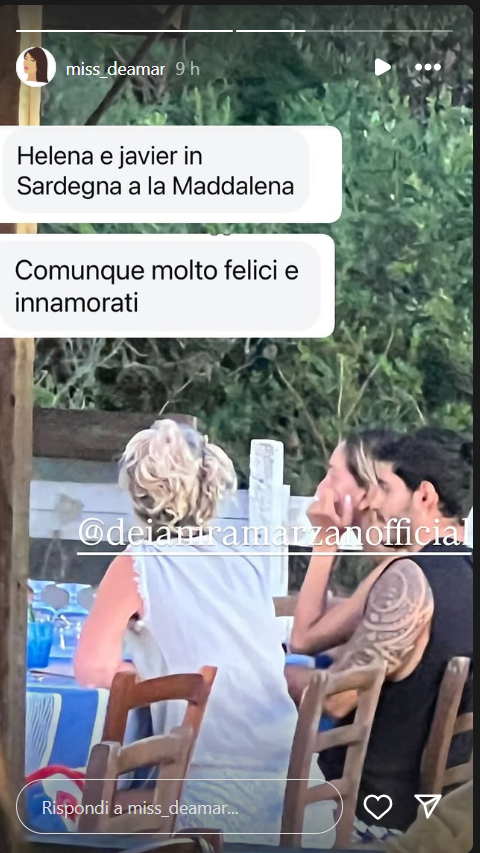 Ecco quanto riportato dall’esperta di gossip, Deianira Marzano, la quale ha raccolto la segnalazione di una utente e fan del reality show di Mediaset presentato fino allo scorso marzo 2025 da Alfonso Signorini: “Helena e Javier in Sardegna a La Maddalena, comunque molto felici e innamorati“.