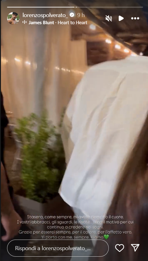 Ecco le parole di Spolverato: “Stasera, come sempre, mi avete sempre riempito il cuore. I vostri abbracci, gli sguardi, le risate.. sono il motivo per cui continua a credere nei sogni. Grazie per esserci sempre, per il calore, per l’affetto vero. Ti porto sempre con me, per sempre. Vi amo”.