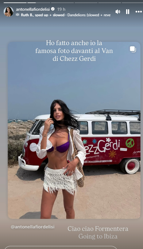 Antonella Fiordelisi continua ad animare questa calda estate e questa volta lo fa in quelli di Formentera. L’ex schermitrice e influencer salernitana, amatissima dal pubblico social con quasi 2 milioni di follower, è tornata a incantare Instagram con nuovi scatti mozzafiato direttamente da Formentera e Ibiza. “Ho fatto anche io la famosa foto davanti al Van di Chezz Gerdi”, scrive ironicamente, posando davanti al celebre furgoncino colorato simbolo dell’isola delle Baleari.