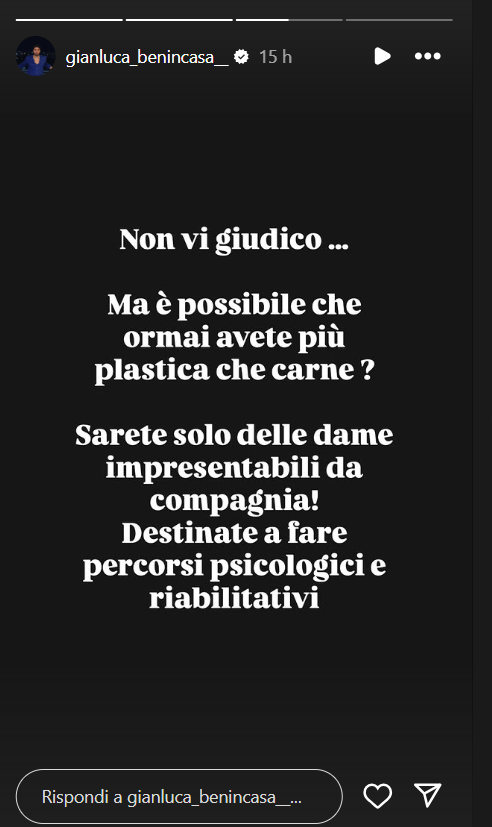 Ecco le dichiarazioni di Gianluca Benincasa su Instagram: