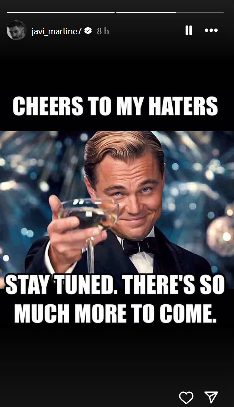 Ecco riportate, di seguito, le parole di Javier su Instagram: “Un brindisi ai miei haters”.