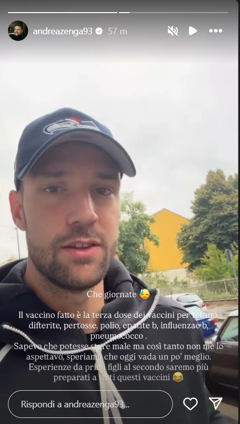 Andrea ha dichiarato: “Che giornate. Il vaccino fatto è la terza dose dei vaccini per tetano, difterite, pertosse, polio, epatite b, influenza a e b, pneumococco. Sapevo che potesse stare male, ma così tanto non me lo aspettavo. Speriamo che oggi vada un po’ meglio. Esperienze da primi figli al secondo saremo più preparati a tutti questi vaccini”.